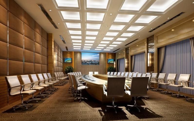?照明控制:采用電源控制箱與墻上面板雙控模式控制, 通過中控編程, 可實現觸摸屏及墻上面板對會議室所有燈光進行開關控制; 通過系統調光設備, 也可實現觸摸屏對會議室部分燈光亮暗進行控制。