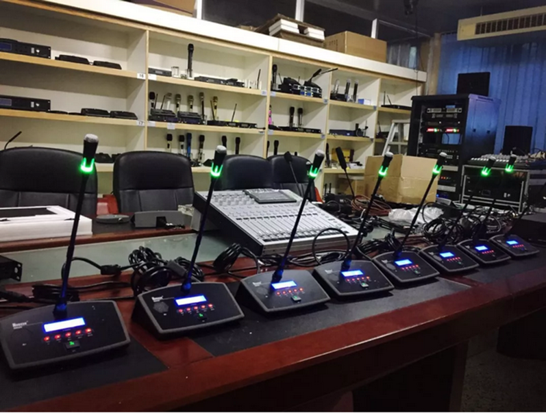 ?討論發言:可實現主席優先發言權,可以隨時中斷代表發言;可實現當打開話筒單元數達到設定最多話筒單元數時,下一話筒打開時,系統將自動關閉最先打開的代表話筒單元;可實現限定發言總人數,當話筒打開超出設定范圍時,其它話筒均不能打開。