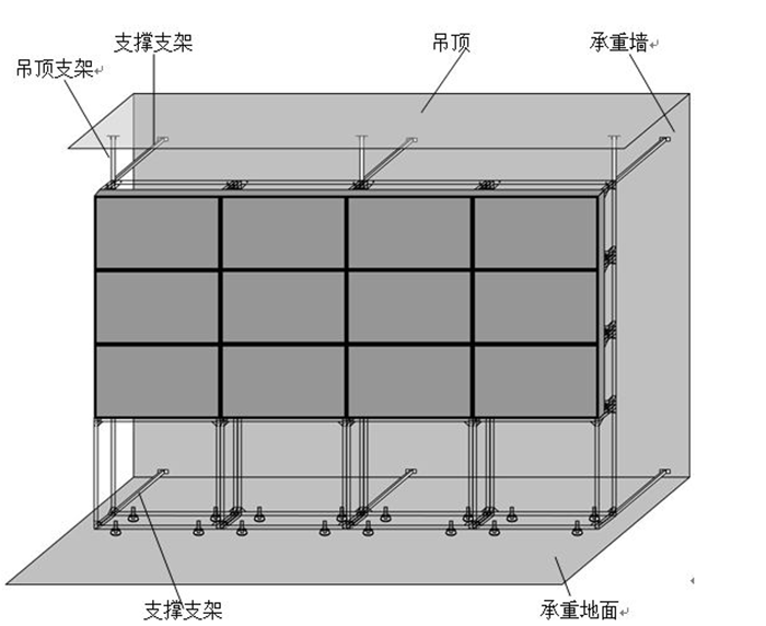 安裝基座一般直接與抗靜電地板接觸,以保證地面長(zhǎng)期承重受力不變形。安裝在墻壁上則要注意墻壁的承載能力和墻體的結(jié)實(shí)程度,而且墻壁和屏幕之間要留有大于10-20CM的散熱空間以保證熱量排出。地面要求平整結(jié)實(shí),承重力強(qiáng),不變形。