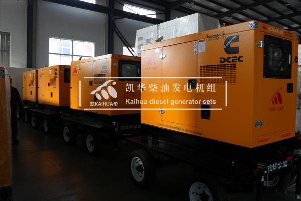 新加坡客戶在我公司采購的四臺移動(dòng)靜音式柴油發(fā)電機(jī)組今日成功出廠,機(jī)組功率均為50KW,采用合資東風(fēng)康明斯動(dòng)力,配備凱華無刷發(fā)電機(jī)。我公司生產(chǎn)的移動(dòng)式靜音發(fā)電機(jī)組,噪音小、制動(dòng)可靠平穩(wěn),是各野外施工單位理想和移動(dòng)電源。下圖為機(jī)組出廠現(xiàn)場: