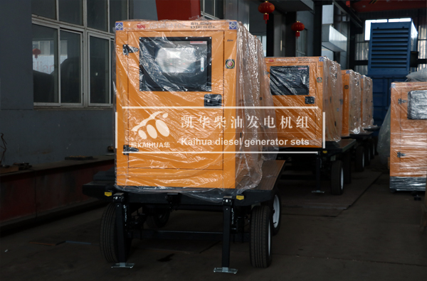 吉林電力公司在我公司采購的四臺移動式柴油發電機組今日成功出廠,機組功率均為50KW,采用國內知名品牌玉柴股份發動機動力,配備凱華無刷發電機。機組為移動靜音柴油發電機組,噪音小,可隨車拖動,適用于戶外電力需求。下圖為機組出廠現場: